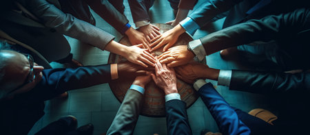 A powerful visual representation of collaboration, showcasing diverse hands joining together to symbolize unity, creativity, and innovative teamwork in a business setting.