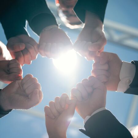 close up . business team showing their unity.