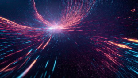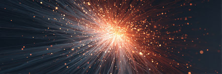 Vibrant abstract background showcasing dynamic light bursts and glowing particles that evoke a sense of depth and movement in a cosmic atmosphere