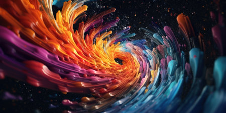A colorful swirl of paint on a black background. Generative AI image.
