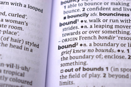 English Definition Dictionary Page Close Up Of Printed Word Of -Bound