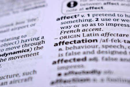 Close Up Of English Dictionary Page With Word - Affectation