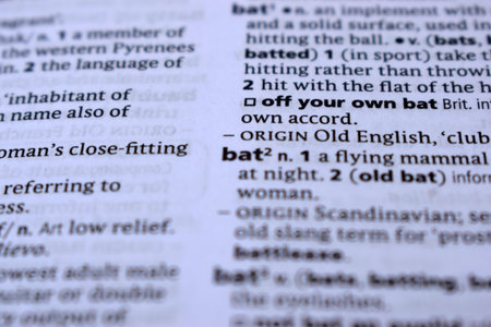 English Definition Dictionary Page Close Up Of Printed Word Of -bat