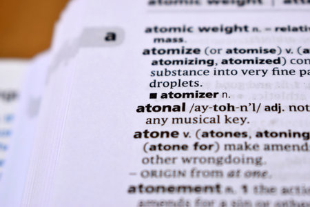 English Dictionary Page Close Up With the Word Of -atonal