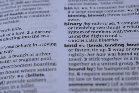 Close Up Of English Dictionary Page With Word - bind