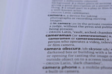 English Dictionary Page Print Close Up With The Word Meaning Of -cameraman