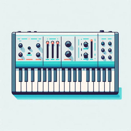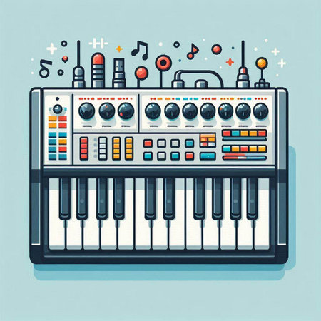 Vector illustration of electronic music instruments. Electronic piano, synthesizer.