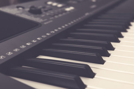 Piano Keyboard synthesizer closeup key frontal view