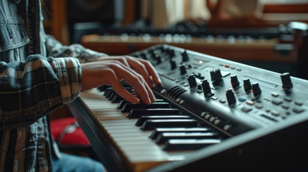 Herb musician playing the synthesizer. Musical instruments
