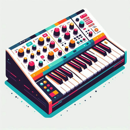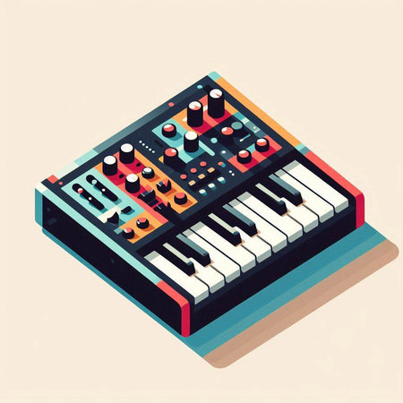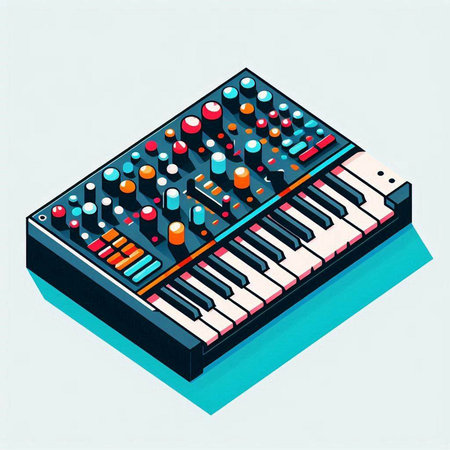 Vector isometric illustration of a synthesizer with buttons and knobs
