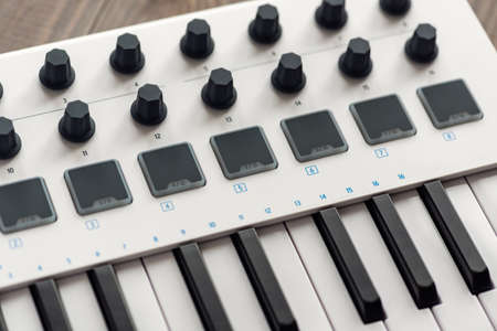 Closeup view of modern and simple midi controller.