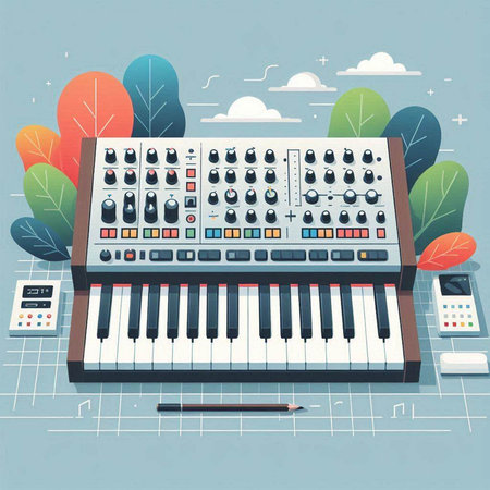 abstract background with synthesizer content created with generative AI software.