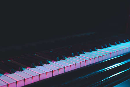 A keyboard music instrument over the dark light.
