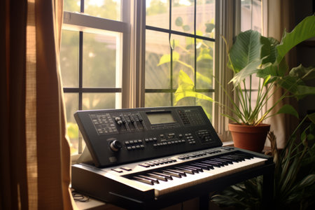 Harmonizing Melodies: A Captivating Scene of a Black Electronic Keyboard near a Window - AR 3:2