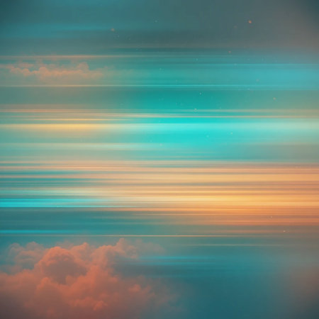 An abstract composition featuring soft horizontal streaks of teal, orange, and yellow colors, creating a sense of gentle motion.