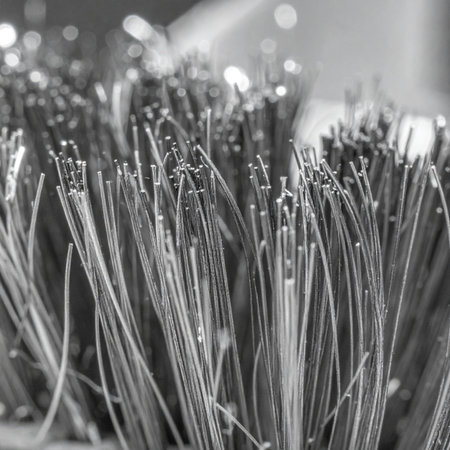 A detailed macro photograph captures the intricate and orderly chaos of industrial brush bristles.