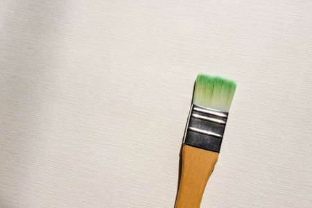 One used art brush for painting on the white canvas table.