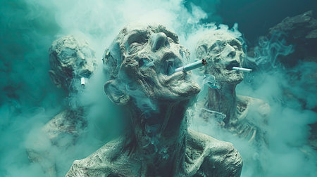 Vape concept. Old man smoking cigarette in smoke. 3d illustration