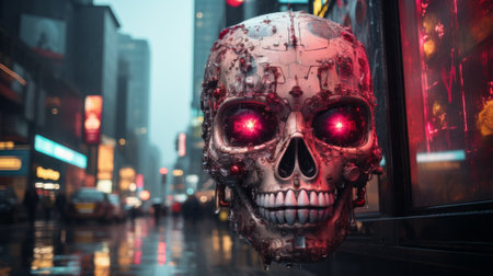 A horror concept of a scary portrait of a skull, demon figure. On a dark grunge background.
