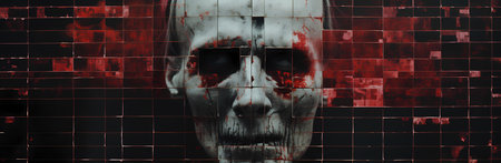 Cybercrime and cybercrime theme of a bloody zombie. Abstract art watercolor background
