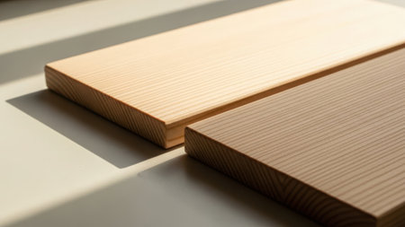 Three light wooden boards arranged on a white surface in sunlight