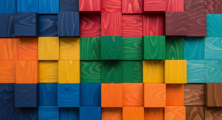 An array of colorful abstract wooden blocks creating a vibrant and textured background.