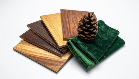 Decorative laminate samples arranged in a fan shape for modern interior design planning