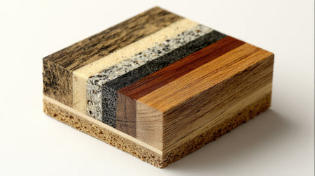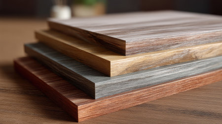 A visually appealing stack of wood and composite materials, highlighting unique textures and colors perfect for design inspiration and construction use.