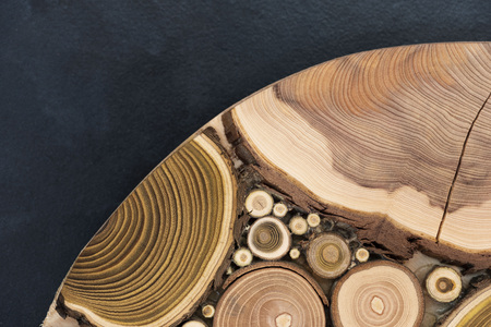 Wooden sampler on dark background close up