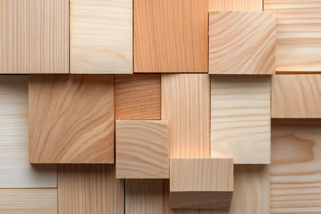 wooden blocks with varied textures and colors, close-up view. natural material and craftsmanship concept