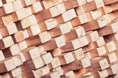 Decoration wooden blocks wall close up. Close up block of the wood wall backgrounds, abstract textures.