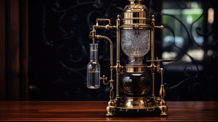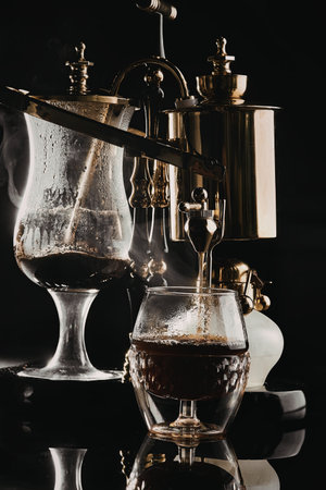 modern siphon coffee maker with glass coffee pot for making pour-over espresso in coffee shop