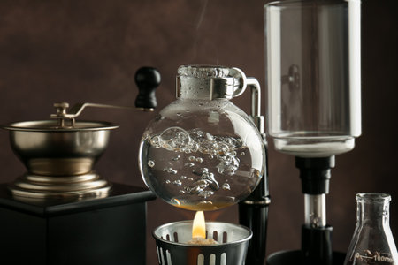 Brewing coffee with a siphon in a cozy cafe during the morning
