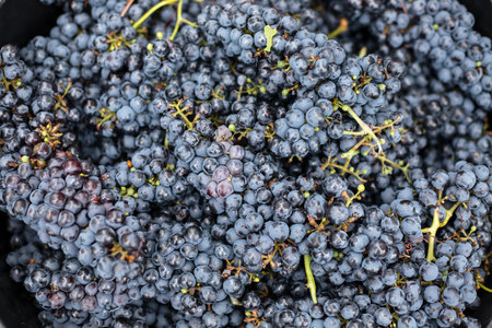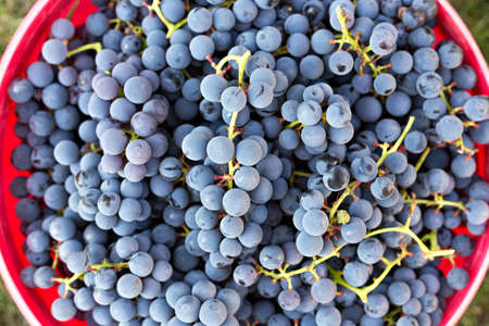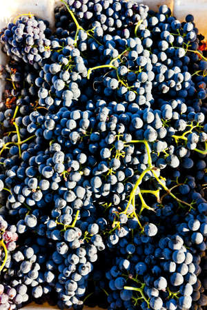 Wine making and winery concept, Fresh grape bunches for making wine, at vineyard