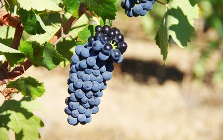 Bunches of red wine grapes ready to be harvested in a vineyard