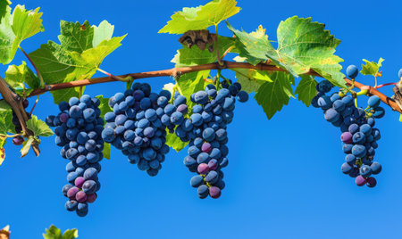 Abundance in the Vineyard: Capturing the Beauty of Hanging Bunches of Black Grapes