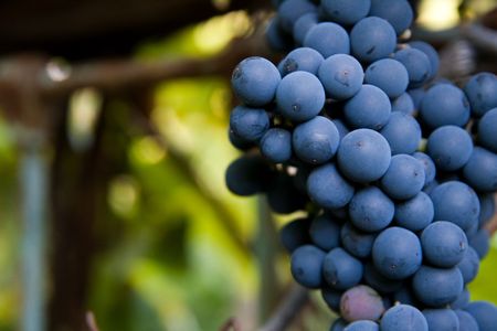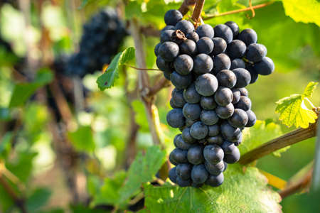 Bunch of purple grapes in a vineyard in autumn in the wine-growing area