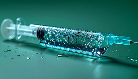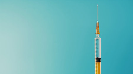 In a sterile laboratory setting, a syringe filled with a revolutionary new vaccine rests, its contents bubbling with potential. This image captures a moment of hope and scientific breakthrough, symbolizing the fight against disease and the future of medicine.