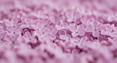 Close up view of numerous delicate light purple lilac flowers creating a soft, natural floral background. The small blossoms fill the frame with gentle hues.