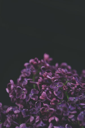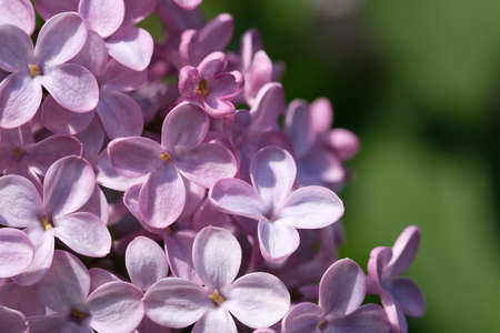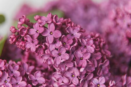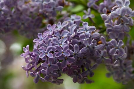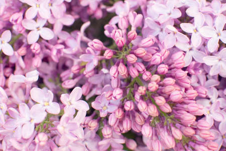 macro view of flower lilac. A beautiful bunch of lilac closeup. Bush Bloom. flowers in the garden. Soft selective focus. Copy space