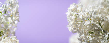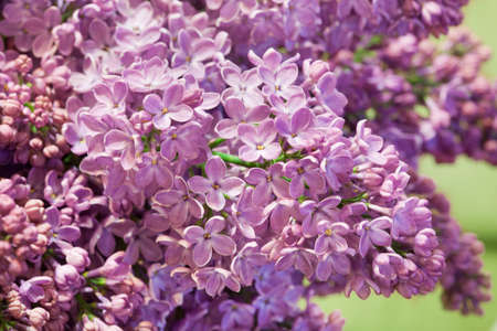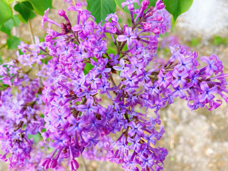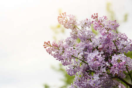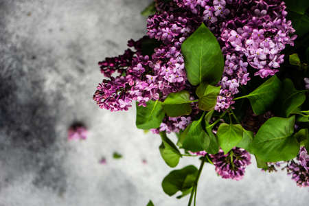 Fresh branches of lilac flowers close-up on a blurred background, spring background.