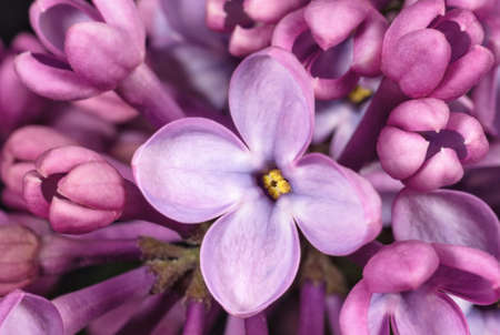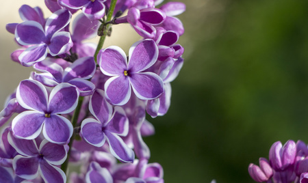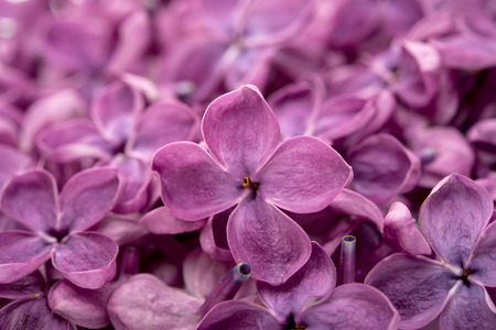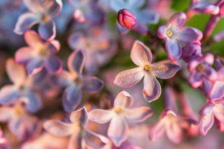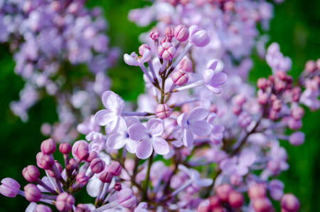 Shallow depth of field (selective focus) and macro image with purple lilac flowers.