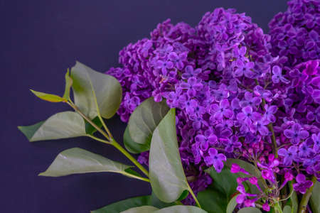 A bouquet of lilacs. Close up. Beautiful purple violet blooming lilac flowers. Greeting card.