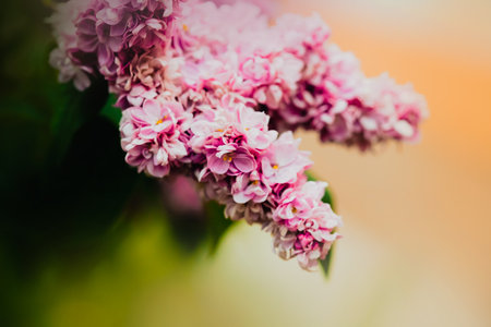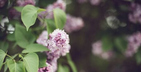 branch with lilac spring flowers, bright blooms of spring lilacs bush, soft focus, close-up
