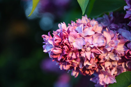 In the spring, beautiful purple lilac flowers bloom, creating a stunning sight in the evening twilight. Macro photography captures the delicate petals and intricate details of these flowers.