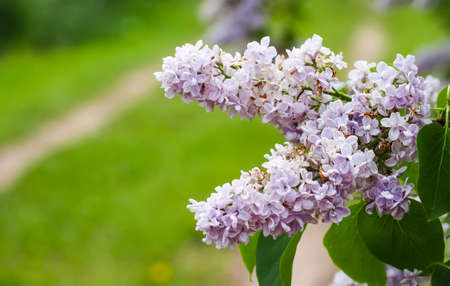 Fragrant lilac flowers bloom in spring outdoors in spring day
