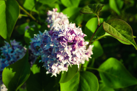 Beautiful purple Syringa vulgaris or lilac in summer breeze.