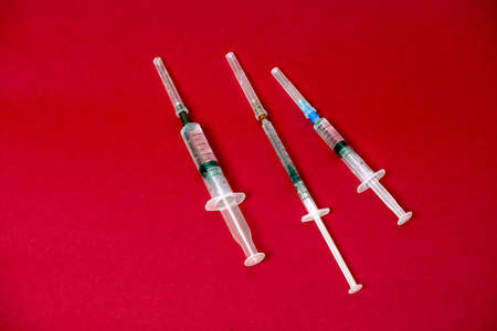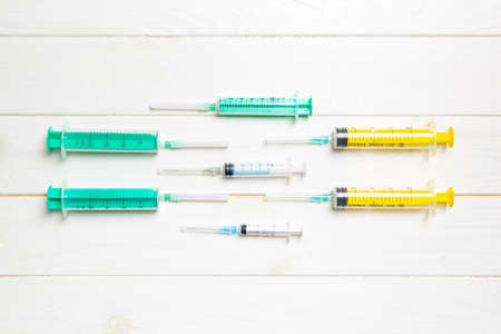 Therapeutic pattern of plastic syrenges with colorful vaccines.