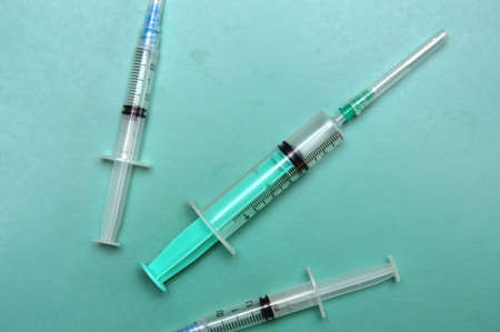 Stock photo of three syringe needle on a white background. There is nobody on the picture.
