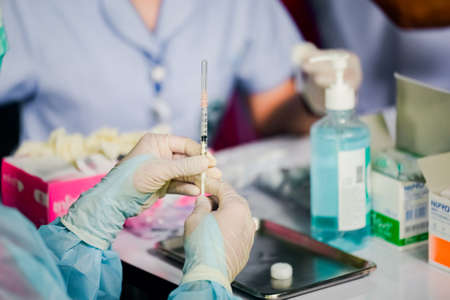 Doctors vaccinate to immunize against COVID-19 to the people and to prevent the outbreak of influenza or COVID-19.
